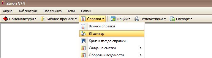 Повече информация за работата с BI центъра можете да намерите в нови теми в помощната система на Zeron V/4.