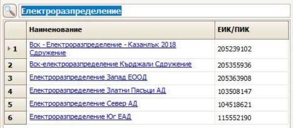 Ако са намерени данни за повече от един субект, се появява списък с намерените, от които трябва