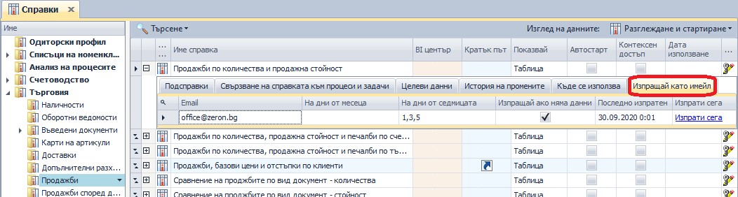 3. Периодично изпращане на справки, по имейл, според настроен график.